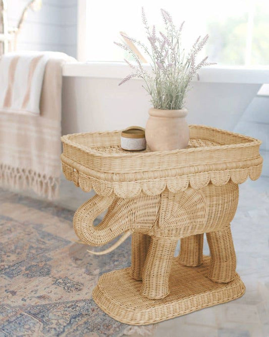 Scalloped Rattan Elephant Side Table