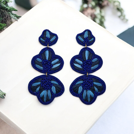 Blue Raffia & Beaded Earrings