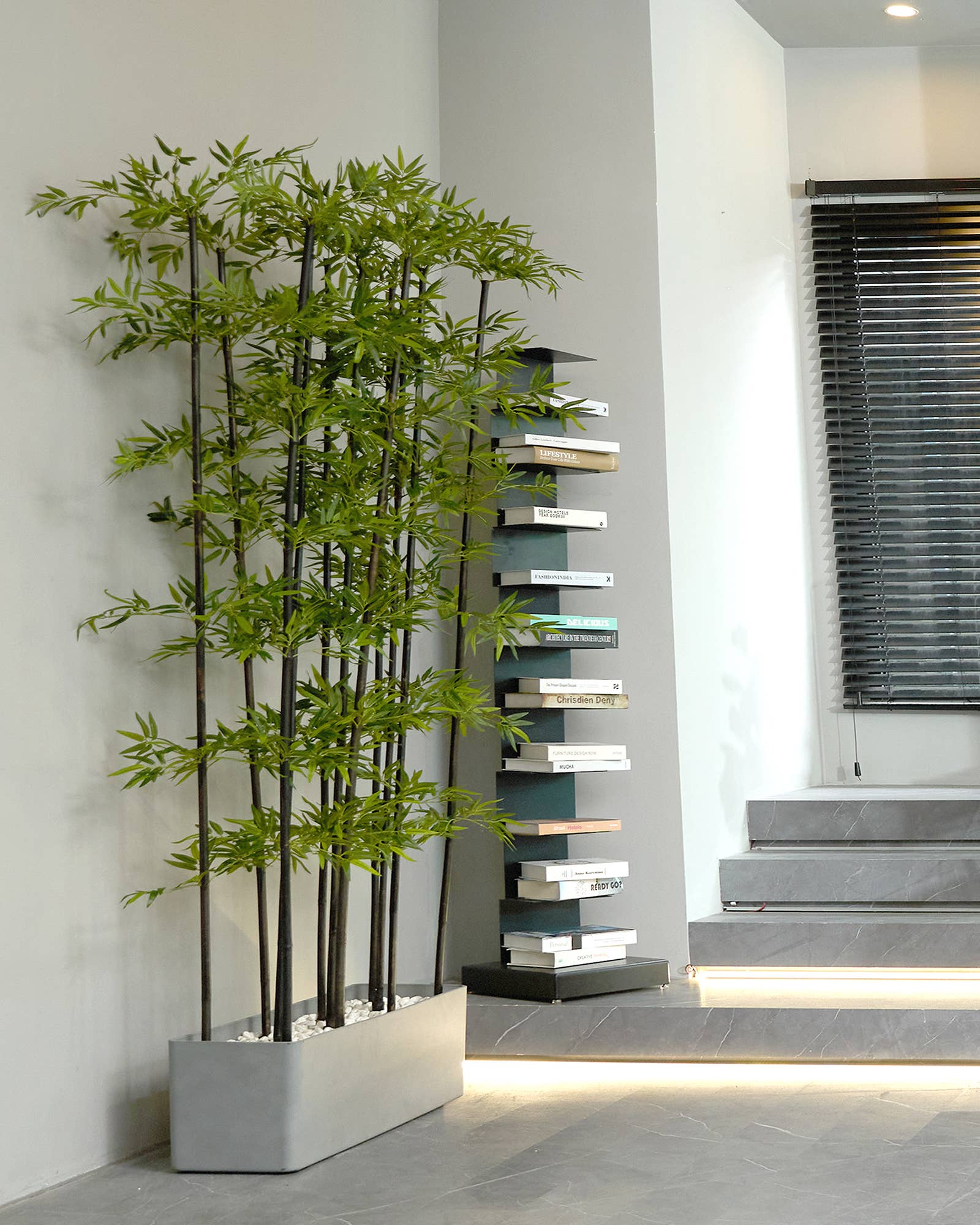 Elevate your space with this impressive 84" tall artificial bamboo plant, set in a stylish grey resin planter.