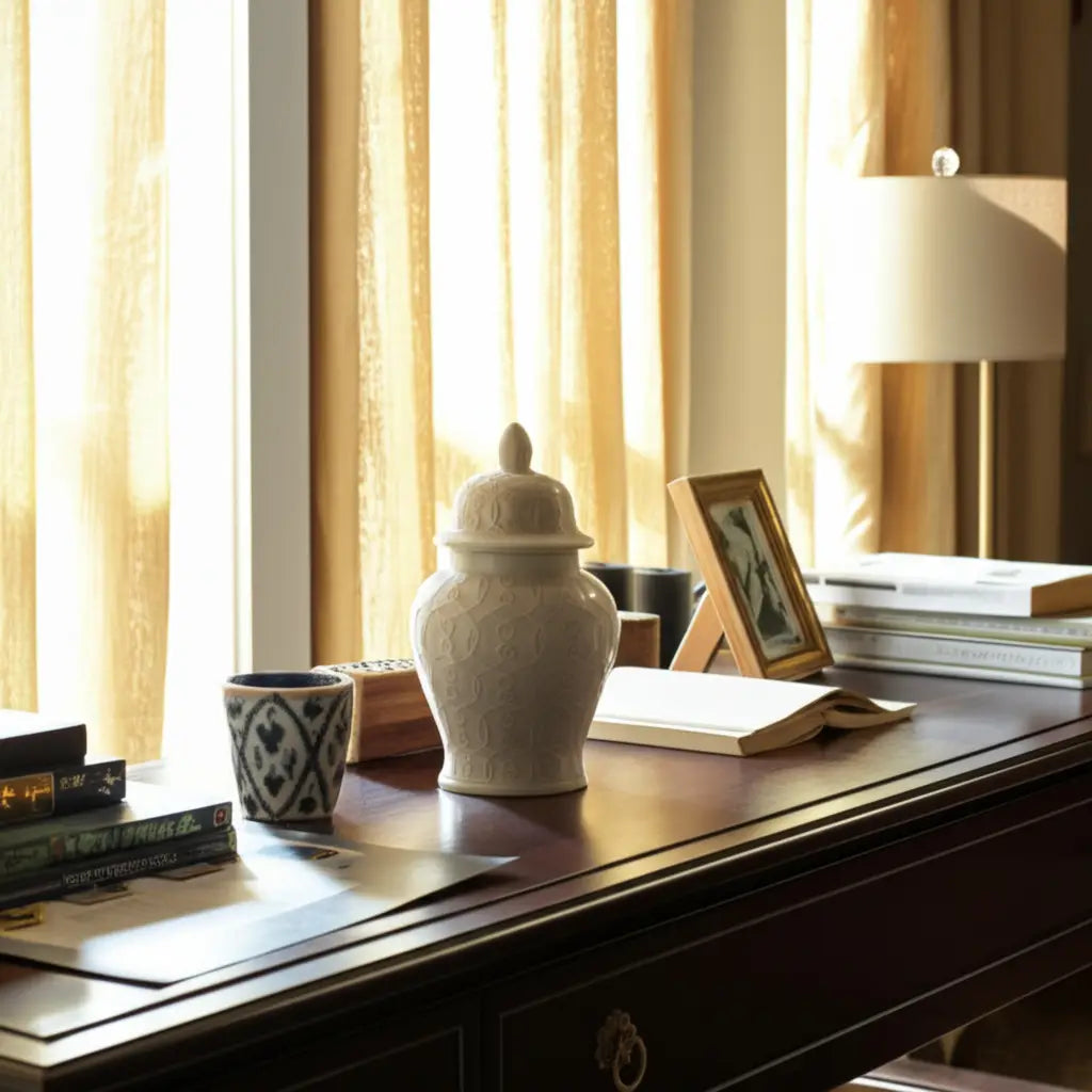 ELEGANT CHINOISERIE DESIGN - Elevate your home decor with this beautifully crafted stoneware ceramic jar, featuring intricate raised patterns and a glossy finish. Perfect for adding a timeless, sophisticated touch to your living room, or dining area.
