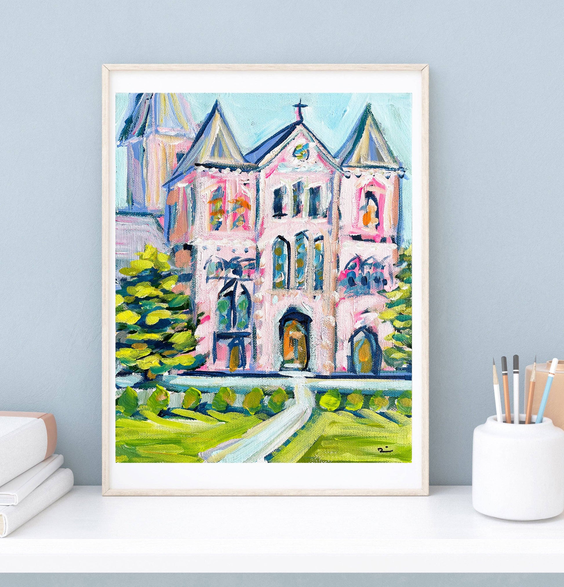 Key West Print by Maren Devine Title: "Pink Cathedral" Size: Various; see pull-down menu. Your Print comes unframed, framed pics are to show examples. Impressionist Church Art, Cathedral. All Prints use archival quality inks and premium matte paper or heavy canvas.