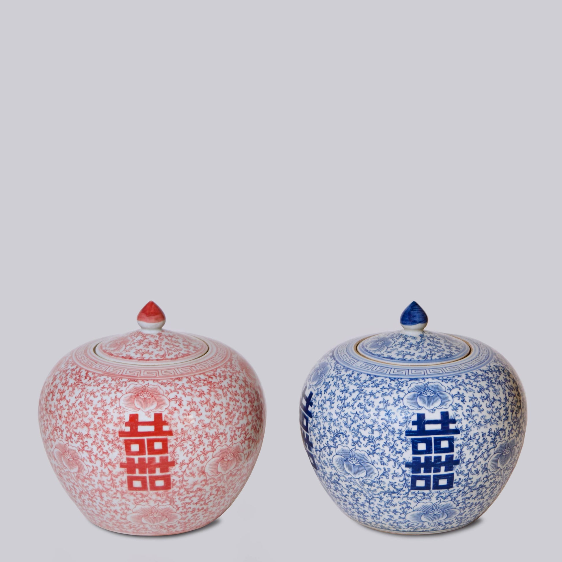 Double Happiness/Scrolling Peony Squat Blue and White Jar