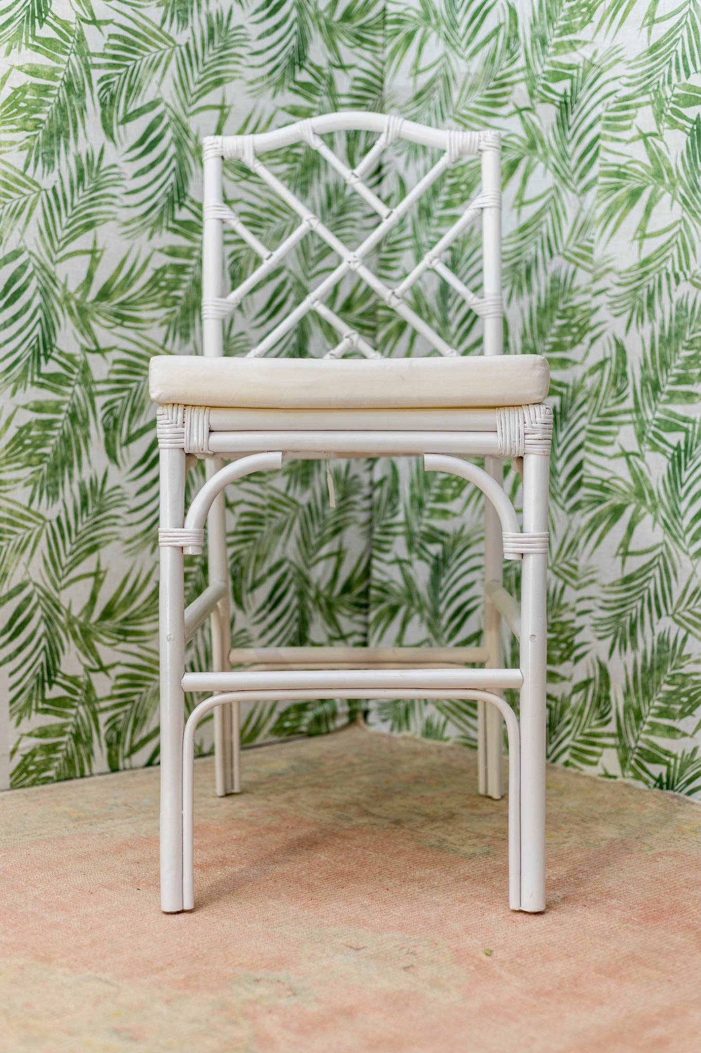 The Harrow Counter Stool captures the sophisticated soul of Chinese Chippendale styling. Great for dining or as an accent chair Fully assembled!! We love the detail on these stools! Dimensions: 18.5" Width x 23.62" Depth x 43.3" Height SH : 22.44" w/o cushion SH : 24.4" with cushion Weight: 11.5lbs Color: White