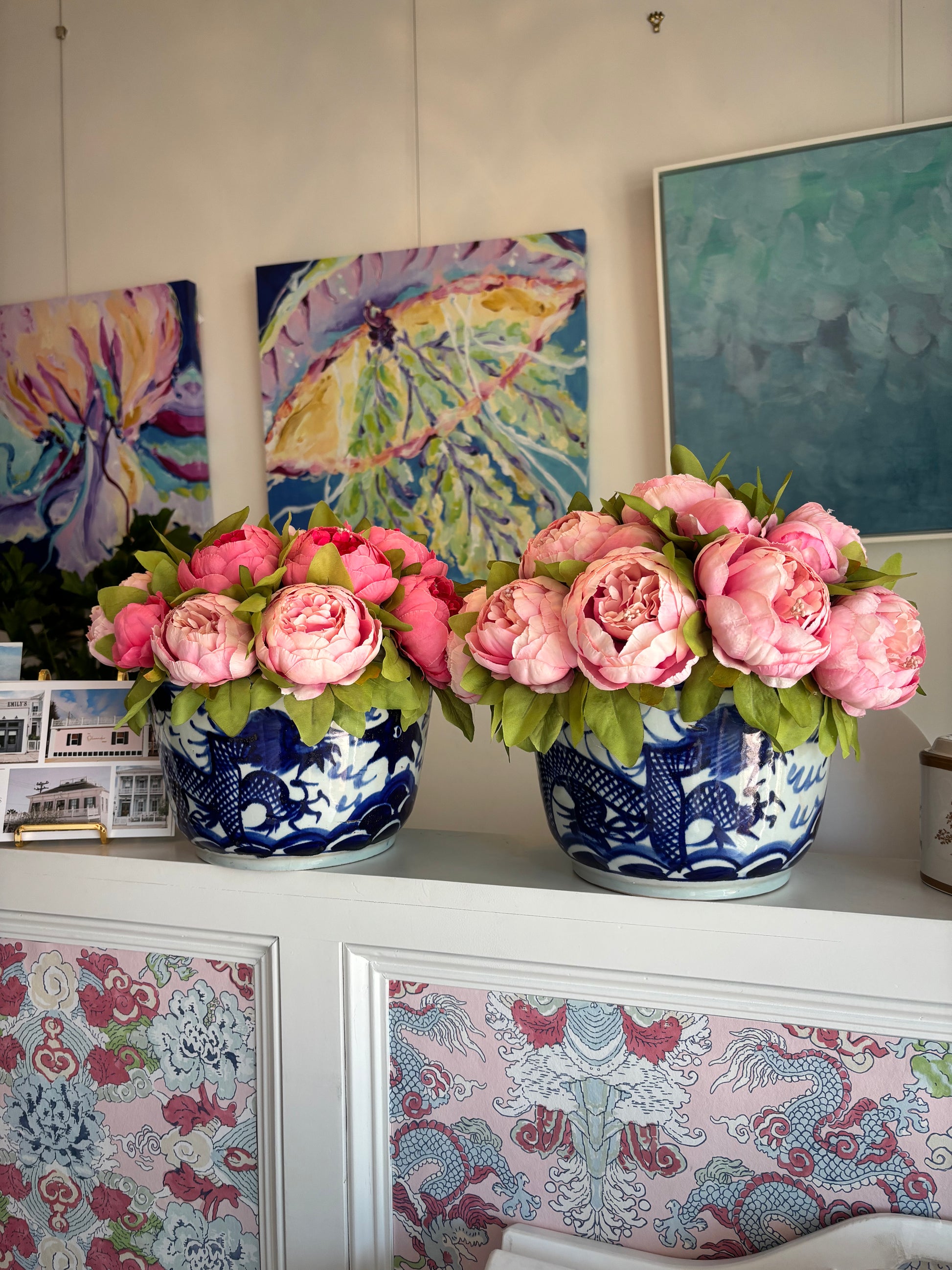 This piece is a rustic hand thrown porcelain cachepot with a loose and lively dragon motif.