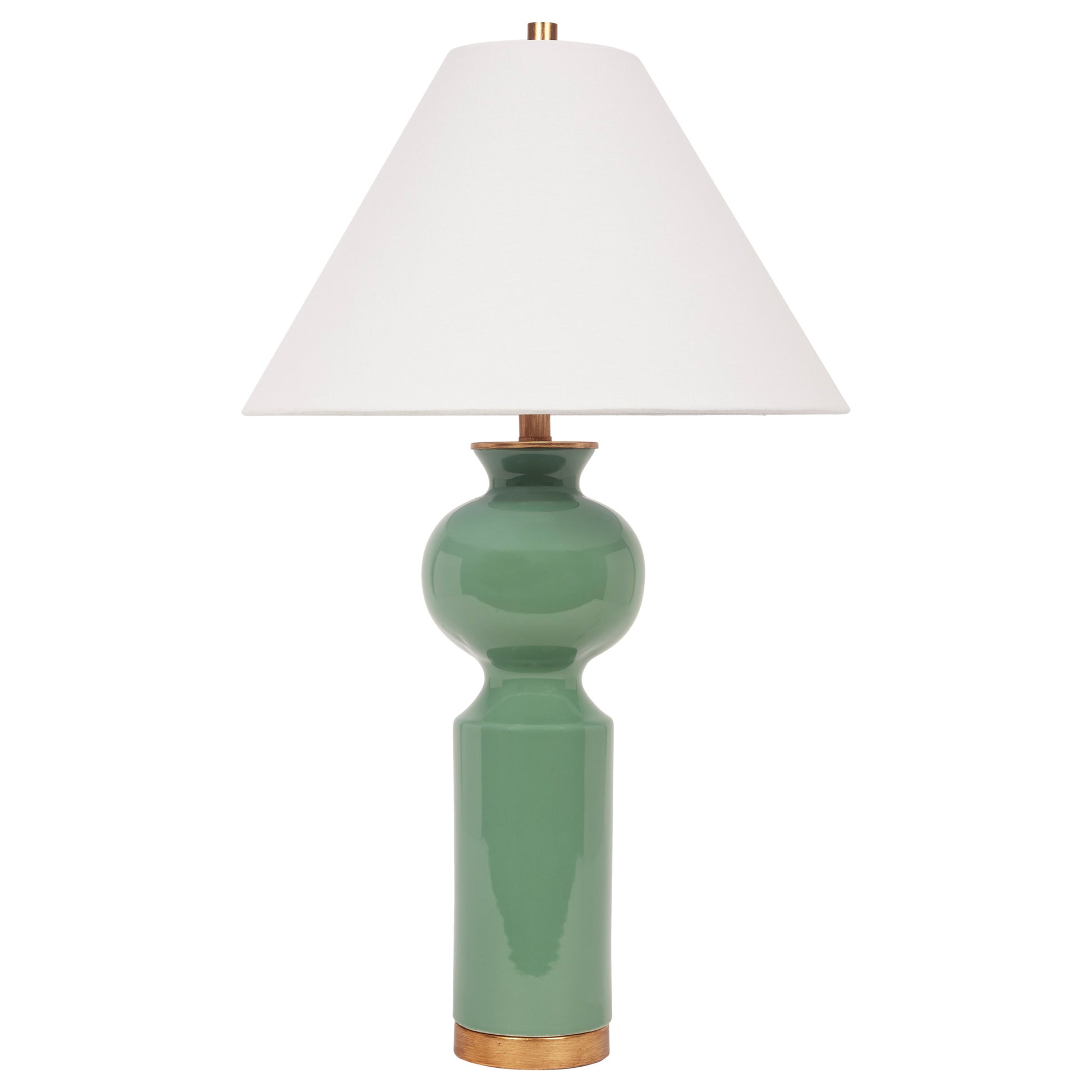 PERLA GREEN CERAMIC TABLE LAMP WITH WHITE LINEN SHADE