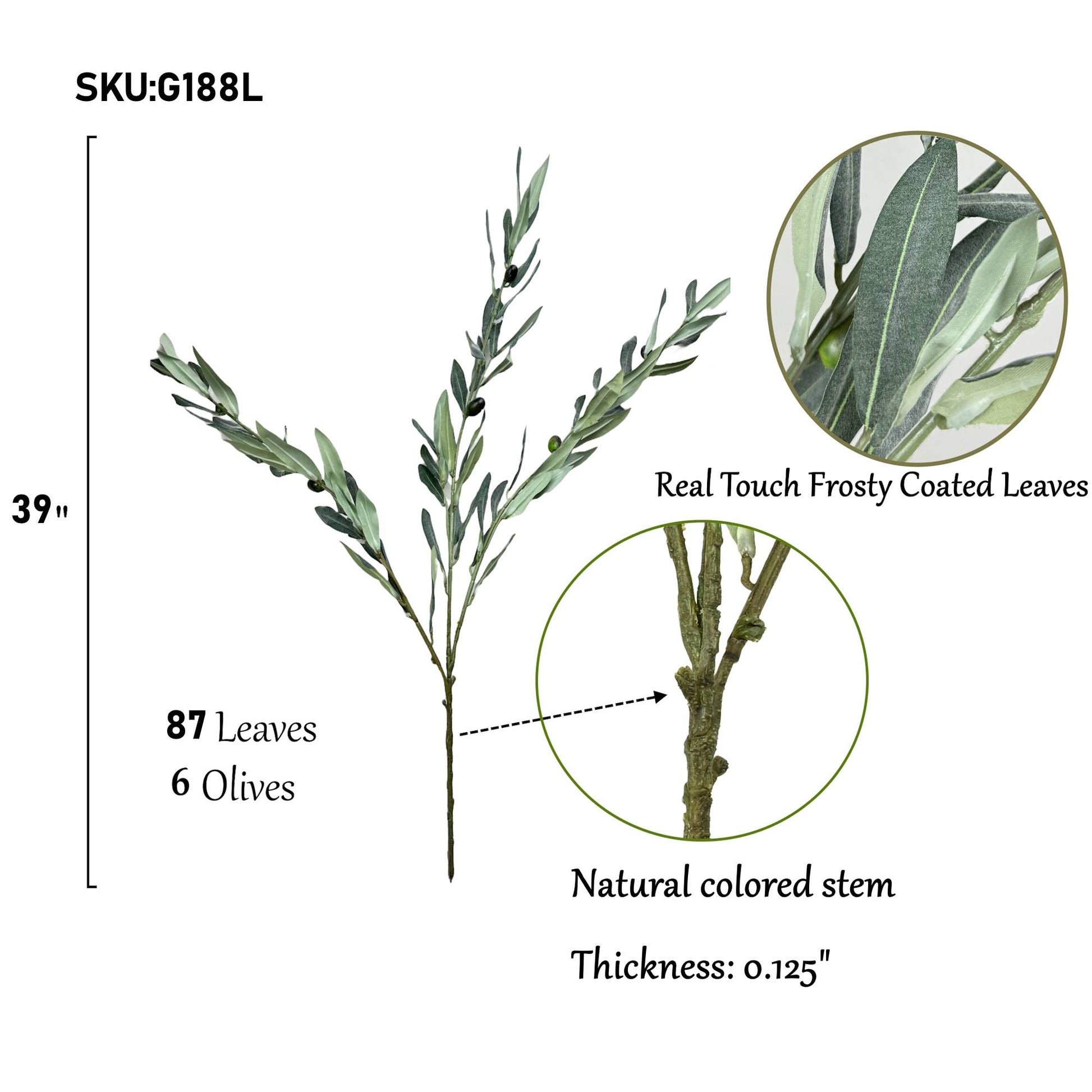 Bring timeless Mediterranean charm to your arrangements with this realistic olive branch spray. Featuring long slender stems, lifelike green olives, and extra-thick fabric leaves, this piece offers both durability and a natural look. The sturdy construction makes it perfect for vases, centerpieces, wreaths, and event décor.
