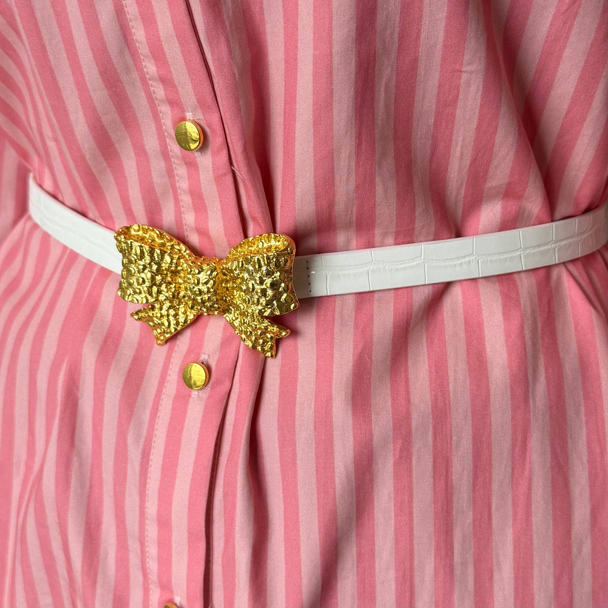 *Please note this thin belt strap only works with our bee, butterfly, Greek key, small bow and cheetah buckles. This belt is made from 100% genuine leather with a blended stretch panel along the back, allowing the belt to function as a stretch belt, and therefore pair with all of our existing buckles! Click here for size chart.
